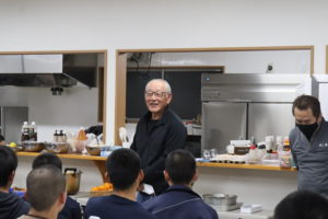 調理は野球部OBの中村浩徳さん(オーベルジュ アカダマ)と同じく野球部OBの山下博生さん(寿司ひろ)が行い、食材となった鮮魚はOB会長の浦口敏海さん(黒瀬)と小山水産(西海町太田和)から無償提供していただき、他の費用はOB会会費で開催しました。