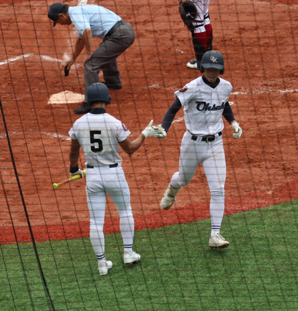 4回裏大崎は、1番今岡が左前打で出塁後、犠打で二塁に進め4番山口剛大が3本目の安打を中前へ放ち、5-1とさらに追加点を上げます。