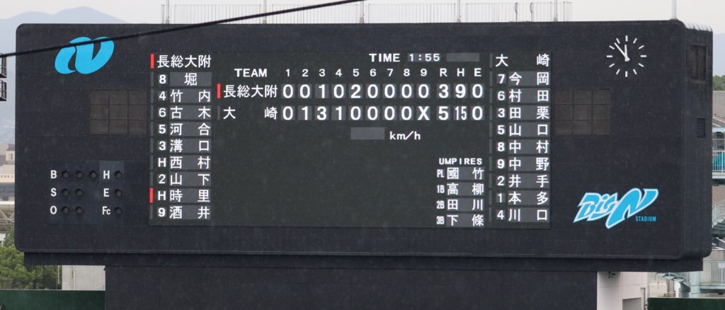 終盤、大崎は走者を出しますが7,8回と内野併殺打で好機を作れず、最終9回は三者凡退に倒れ、2-5のまま試合終了となりました。