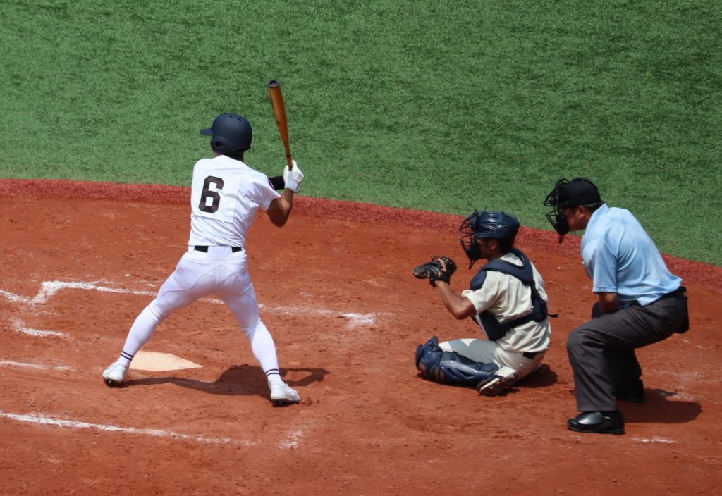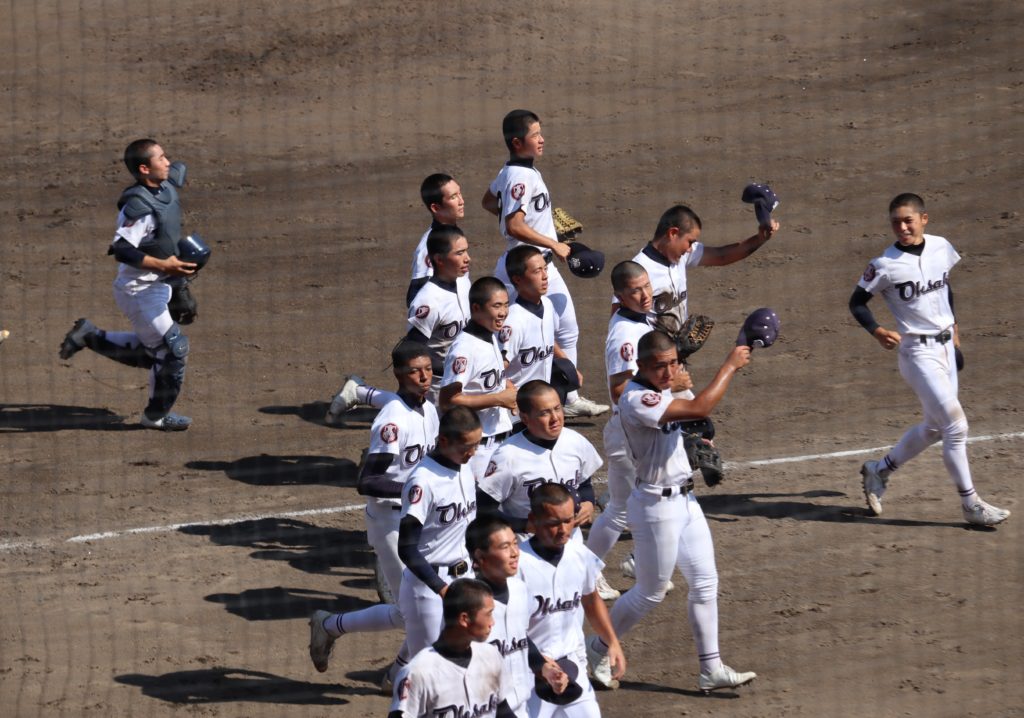 終盤8回裏、大崎は先頭2番中野が四球で出塁、続く3番田栗がこの日2安打となる中前打で好機を広げます。相手捕手が後逸、四球も絡み無死満塁として、5番中村祐斗がこの試合4つ目の四球を選び、押し出しにより1点追加で2-3とし、6番杉本に送られた代打大塚が期待に応え、二塁手をはじき右前へ運ぶ渾身の2点適時打を上げ、大崎が4-3と一気に逆転します。