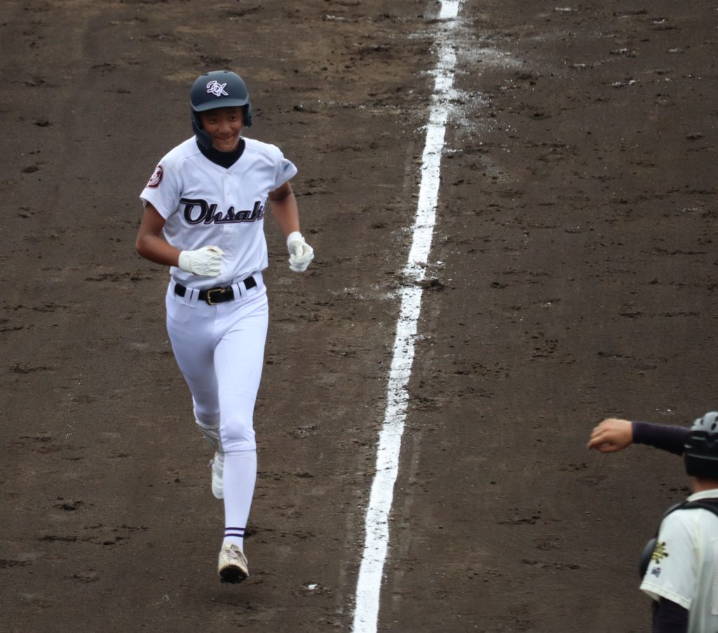 この試合も先攻の大崎は、1回表 先頭打者の堀江のレフト前ヒットから盗塁 3番山口莉貢の内野安打で1点を先制しました。4回表には4番中村祐斗のライト前ヒットを皮切りに2四球をはさみ5連打、2番宮原が右中間にスリーベースヒットを放ち一挙5点をあげ、結果12安打9得点としました。