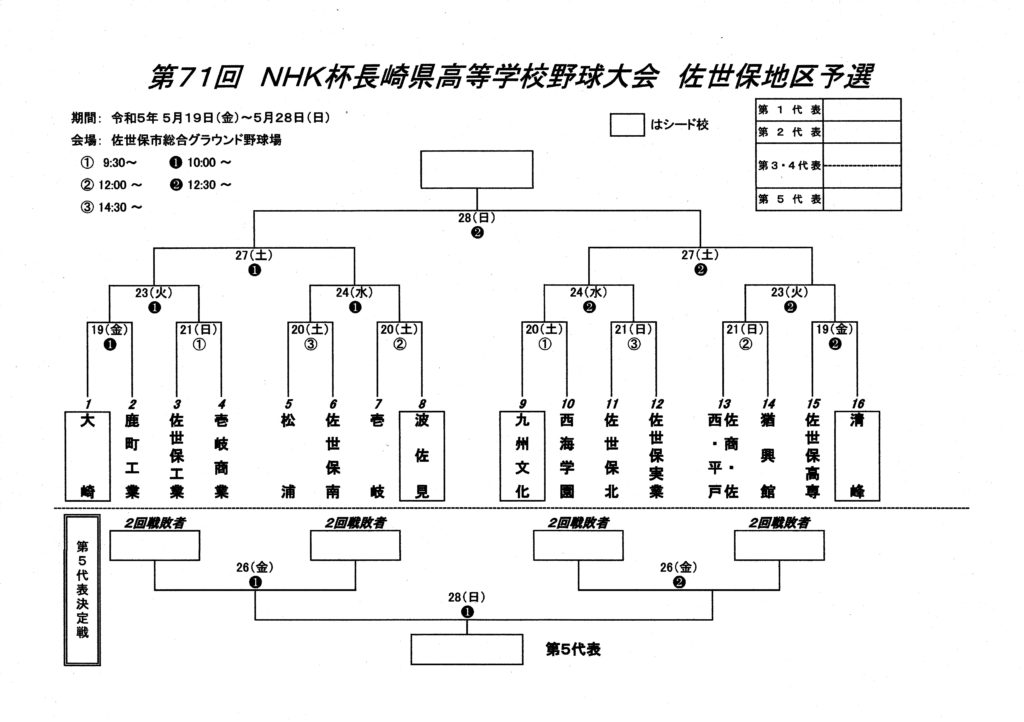 NHK杯は夏の甲子園切符を争う全国選手権長崎大会前の最後の公式戦で、昨秋からNHK杯県大会までの結果(勝敗)で夏のシード校が決まります。