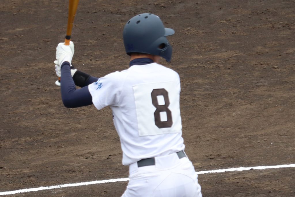 5回まで、1安打と抑えられていた大崎打線は6回表 先頭の9番打者 本山選手が死球で出塁すると敵失で無死二塁のチャンスをつくりました。このチャンスに2番打者 野口凛空選手はセンター前にタイムリーヒットを放ち1対4としますが、後続が倒れ1点だけに終わりました。