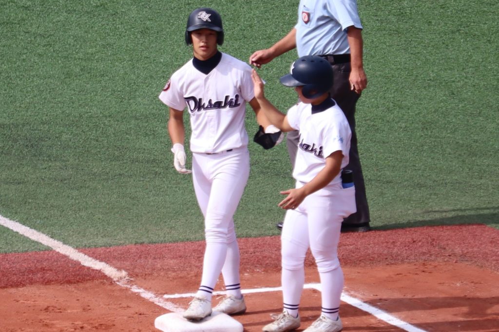 長崎日大打線は、大崎先発の前川響選手(1年)から、3回裏 二死2塁のチャンスに4番打者がライト前ヒットを放ち先制。6回裏は、二死1・2塁で前川響選手をリリーフした川口選手(2年)が、 二死満塁から4番打者に3塁打を打たれ3失点。長崎日大の4番打者は大崎の二投手から4打点と全得点をたたき出しました。