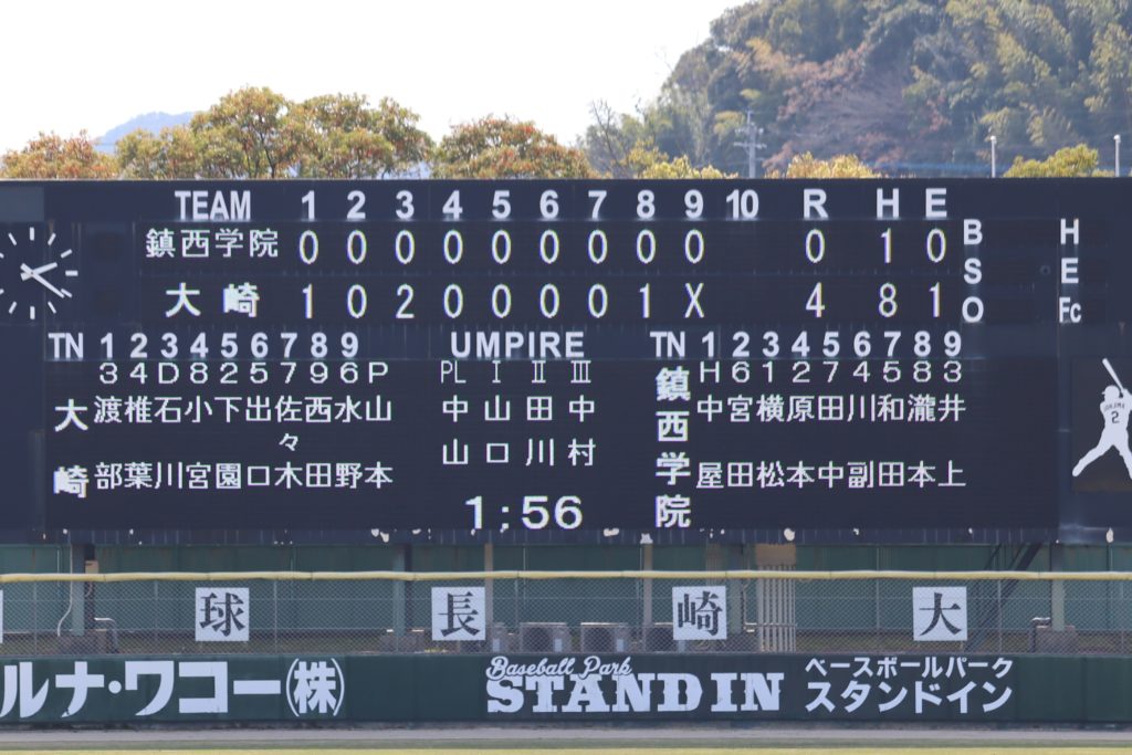 鎮西学院は山本投手に1安打と抑え込まれ無得点